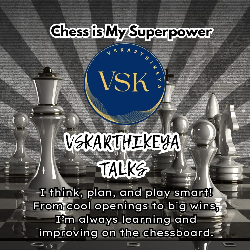 Hi, I'm V.S. Karthikeya, a 4th-grade student with a big love for art and chess. I created this website to share my drawings, paintings, and chess journey with everyone. I believe every picture tells a story, and every chess move teaches a lesson. Come explore and enjoy!